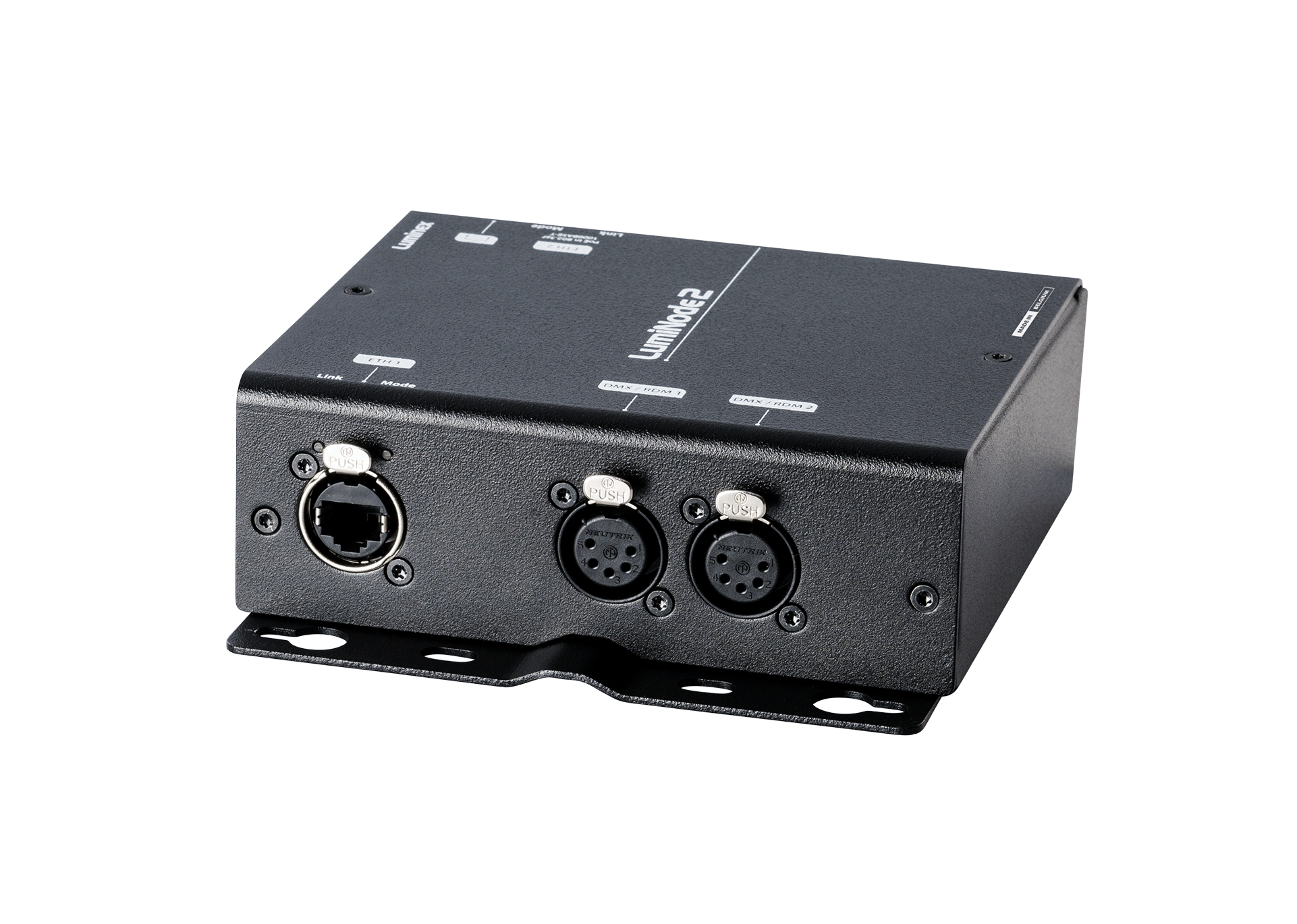LumiNode 2 采用堅固的金屬外殼,適用于固定基礎(chǔ)設(shè)施中的任何吊桿或壁掛式安裝,使其成為巡演、劇院和演播室安裝的理想解決方案。配備 2 個 1Gb Ethercon 端口和 2 個 5 針 DMX 端口,每個 DMX 端口都是完全先學(xué)和電流隔離的,并丏可以配置為輸入或輸出。支持所有相關(guān)的行業(yè)標準協(xié)議,如 ArtNetsACN、KiNET、RTTRpl (Blacktrax),并丏可以通過 4 個板載處理引擎支持 HTP、LTP、Crossfade、Backup、Switch 和軟配接的自定義合并模式功能。