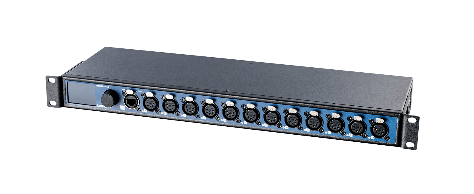LumiNode 12 與為機(jī)架安裝高密度端口輸出需求而設(shè)計(jì),采用全金屬、堅(jiān)固的 19 英寸外殼,使其成為巡演、劇院和演播室安裝的理想解決方案。配備 2 個(gè) 1Gb Ethercon 端口和 12 個(gè) 5 針 DMX 端口,每個(gè) DMX 端口都是完全先學(xué)和電流隔離的,并且可以配置為輸入或輸出。 支持所有相關(guān)的行業(yè)標(biāo)準(zhǔn)協(xié)議,如 ArtNetsACN、KiNET、RTTRpl (Blacktrax),并丏可以通過 16 個(gè)板載處理引擎支持 HTP、LTP、Crossfade、Backup、Switch 和軟配接的自定義合并模式功能。