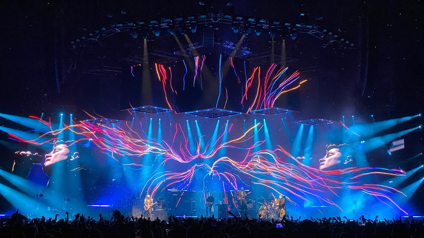 這次演唱會(huì)的的設(shè)計(jì)創(chuàng)意靈感來(lái)自于過(guò)去的專輯巡回演唱會(huì),每首歌曲的燈光效果都以外形和內(nèi)容為特色,創(chuàng)造出驚艷的視覺(jué)效果。在舞臺(tái)設(shè)計(jì)上依據(jù)觀眾視線角度進(jìn)行設(shè)計(jì),確保每個(gè)角落的觀眾都能感受同樣令人驚嘆的視覺(jué)內(nèi)容。 為此設(shè)計(jì)了五個(gè)懸浮的三米視頻立方體,光束效果從內(nèi)部照出,結(jié)合舞臺(tái)10米x9米的LED墻來(lái)打造巨幕電影版的視覺(jué)沖擊力。 Avolites Synergy 功能與Notch效果結(jié)合使用,渲染出震撼的視頻效果。